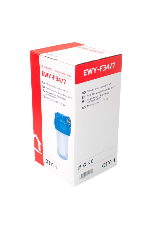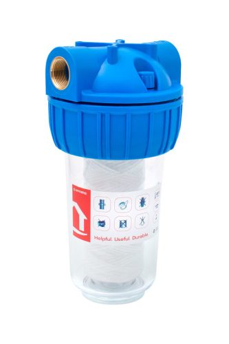 Kompakt 7”-os vízszűrő 3/4” vagy 1” csatlakozással, amely különböző szűrőbetétekkel (pamut, mosható, aktív szenes) használható. Ideális kisebb helyekre, a csomag tartalmazza a szereléshez szükséges kulcsot, szűrőbetétet és falra szerelhető konzolt is.